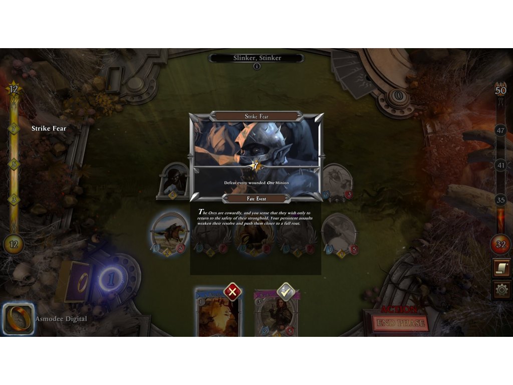 Every quest will require you to experiment with strategies as you confront more and more terrifying foes, ranging from Giant Spiders to fierce Trolls, even hordes of powerful Orcs! The Dark Lord will do everything in his power to prevent you from completing your journey. Watch out for his Threat Pool which can activate story specific events to make your quest more difficult. Take care not to let the Threat Pool reach its maximum… or else it will turn the Eye of Sauron directly on to you!
