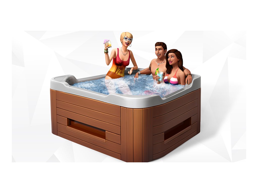 - Relax in the all-new Hot Tub – Take a dip in the hot tub after hard day or splash around with friends. Handy Sims can upgrade each hot tub to include a stereo and even aromatherapy!