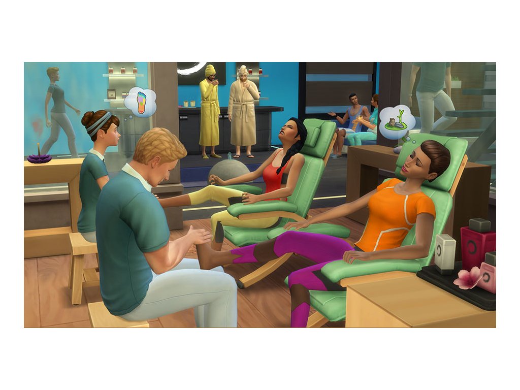 The Sims 4 Spa Game Pack introduces a new skill that your Sim can learn. Whether you want to spiritually connect your body with your soul doing yoga or be a cosmetician choosing colors of your clients' nails, improve your wellness skill and become a Self-Care Expert!
