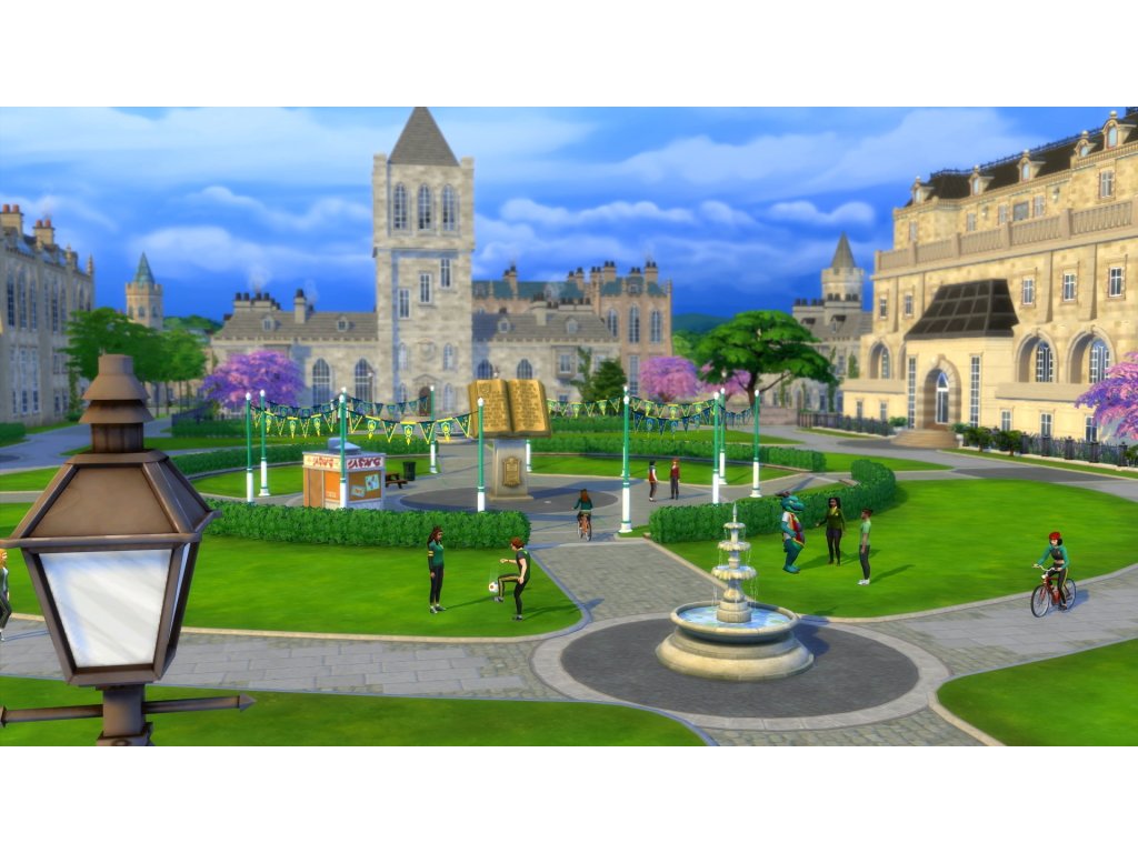 Welcome to Britechester! Begin a new chapter for your Sim when they enroll in the historical University of Britechester or modern Foxbury Institute. Live in a dorm room or off-campus, explore Britechester on a bicycle, spend time in the student commons, and have a study session at the library. Cheer on the student body at a school spirit event and wear school colors to show your Sim’s pride.