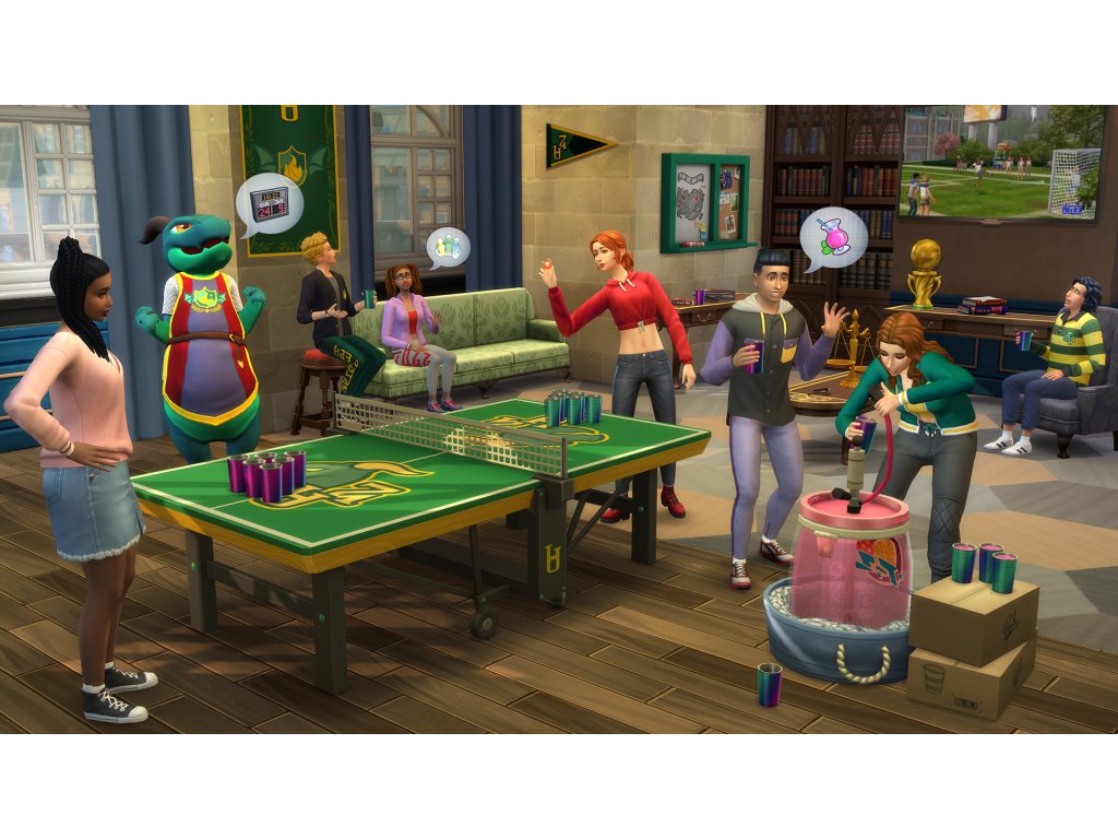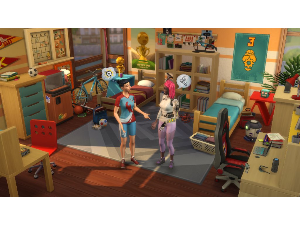 How your Sim embraces college life is up to them. They can study all night to complete homework or chill out and sleep in. And, with activities like juice pong, juggling a soccer ball, and hanging out with roommates, taking a break has never been so fun! Plus, your Sim can join school organizations like robotics, debate, art, or even a mysterious secret society. As the school year progresses, Sims become their best selves and discover who they are meant to be.