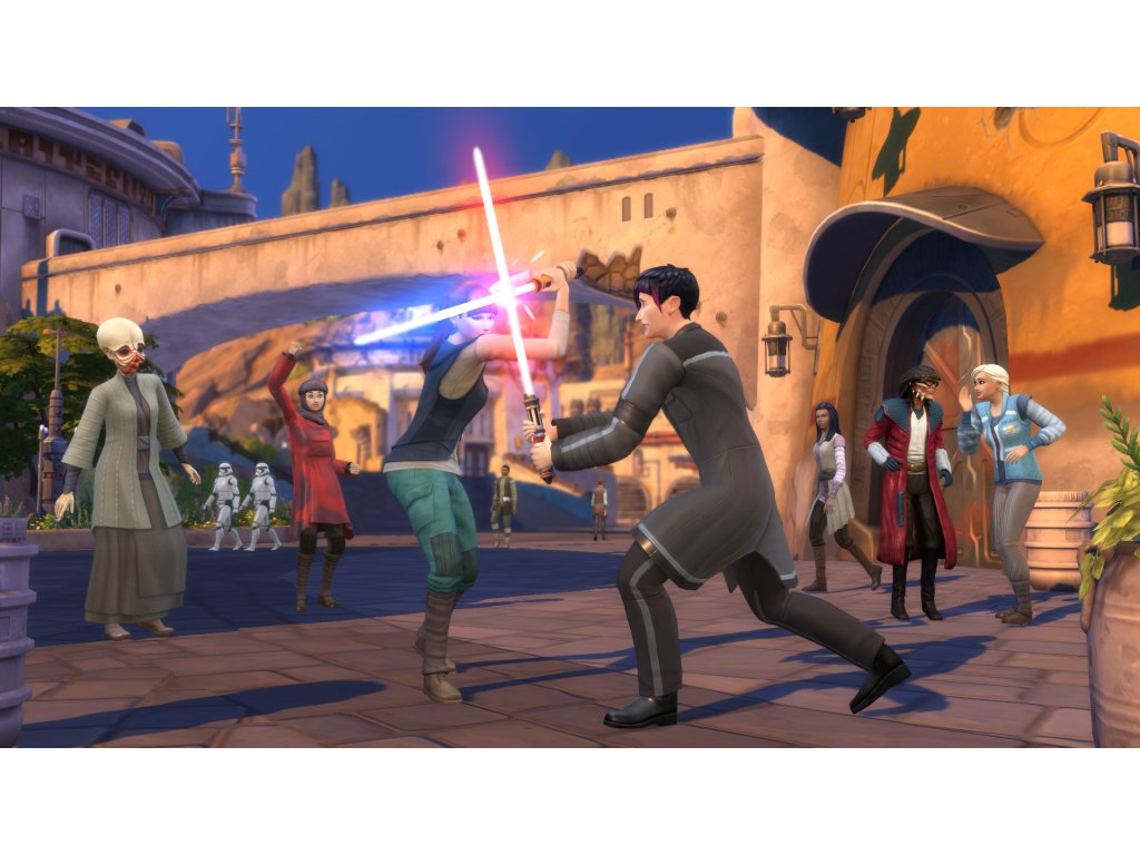 The Resistance, First Order, and scoundrels are fighting to control Batuu, but your Sims' actions determine who will succeed. As Sims undertake challenges and special missions, you'll tip the balance of power. Your influence not only changes the world, but also unlocks rewards like starfighter access, new outfits, and critical missions on Batuu. And who knows? Maybe you'll find your Battuan special someone!
