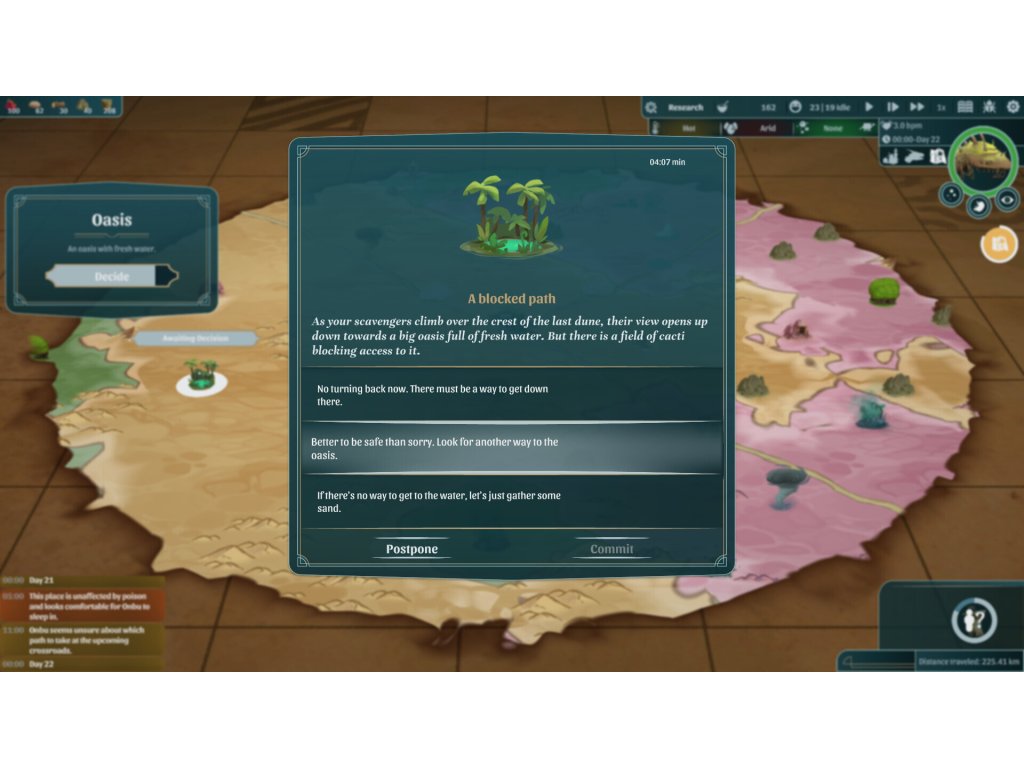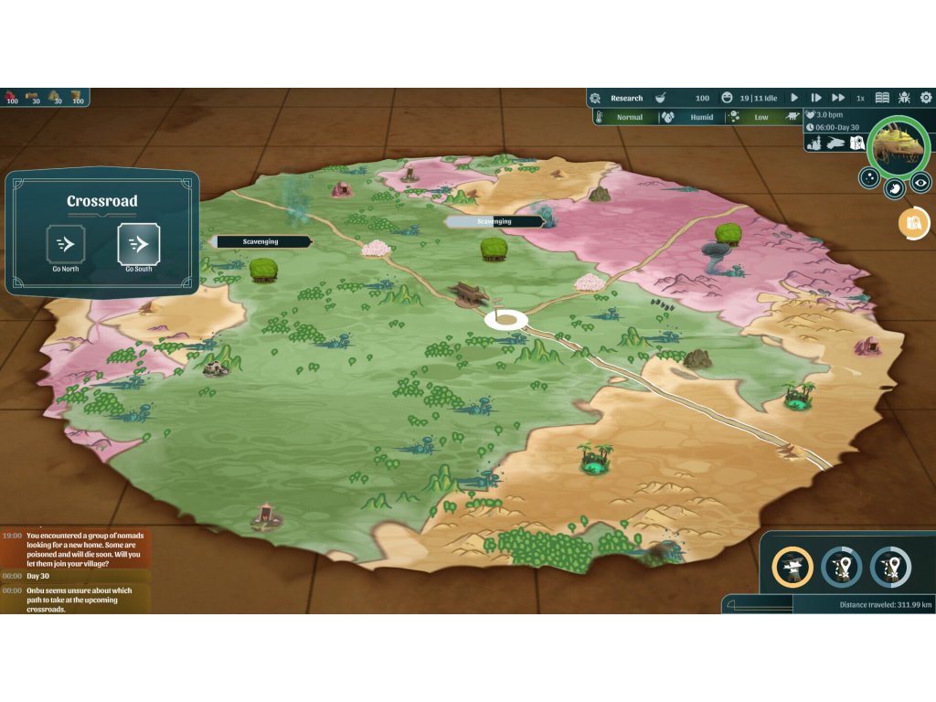 Continuously adapt your village as you travel through a multitude of different biomes, each with its unique climate zones, opportunities and threats. Scout your environments and send out foraging missions to gather rare resources and ancient artefacts.