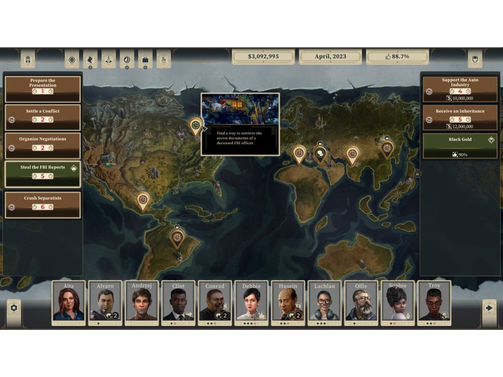 Manage your official and unofficial staff like a real mafioso in order to deal with all the old problems you’ve had in the past, as well as the shiny new problems that come with the office. You’ll battle with your competitors, the establishment, the media and even foreign leaders. In this political thriller-satire mix, the player's actions will inescapably lead to situations that escalate into absurd, terrifying, tragic and even ridiculous situations.
