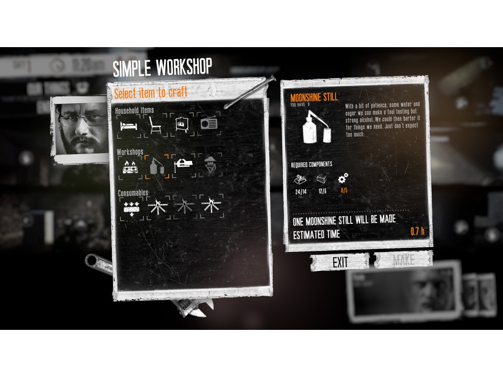 The pace of This War of Mine is imposed by the day and night cycle. During the day snipers outside stop you from leaving your refuge, so you need to focus on maintaining your hideout: crafting, trading and taking care of your survivors. At night, take one of your civilians on a mission to scavenge through a set of unique locations for items that will help you stay alive.