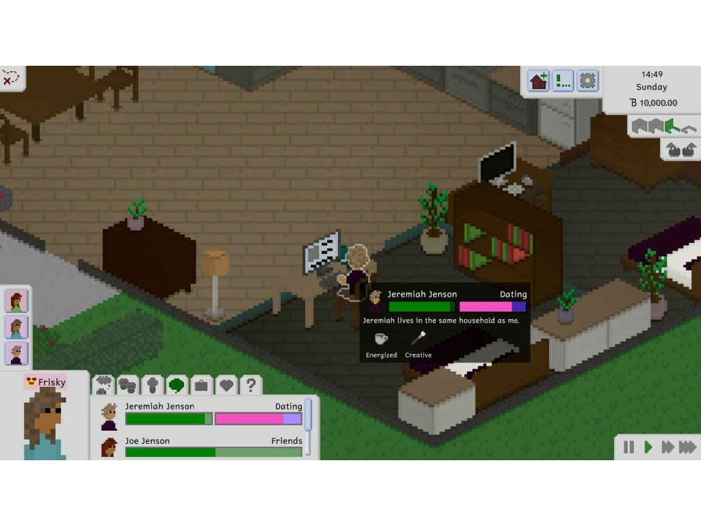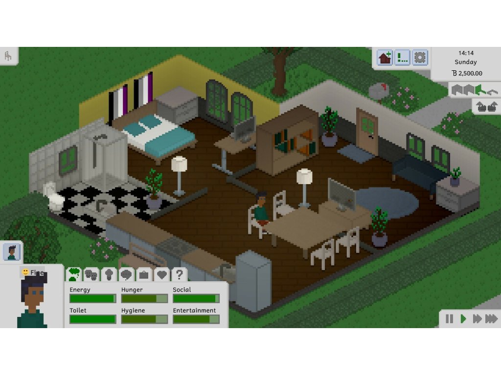 In the game, you control a set of people that live together in a household. You take care of their daily needs, build their skills, forge new relationships... or just mess up their entire life in whatever way you can think of!