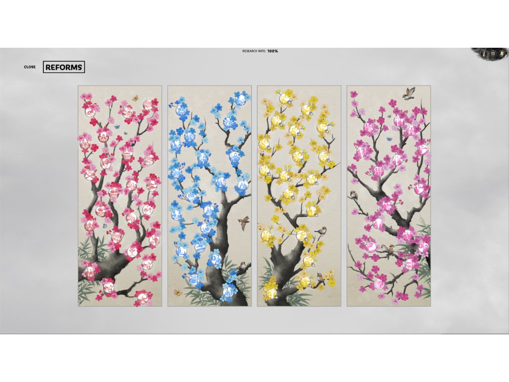 All Yellow Turban factions have access to the new Yellow Turbans reforms tree. The tree contains four major branches, reflecting: