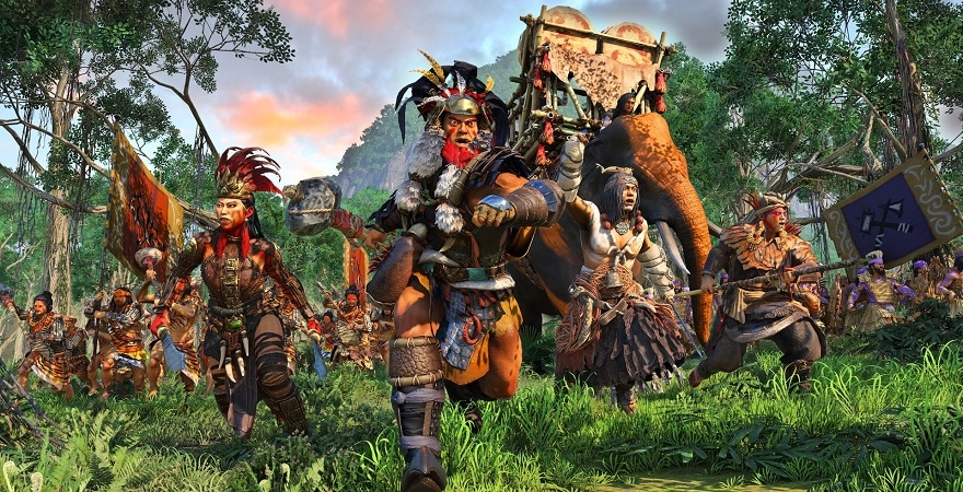 In the undergrowth of the Southern jungle roams King Mulu, a friend to the animal kingdom, but a stranger to man. Spending time in the animal world has gained him many advantages, not least, the mighty elephants that walk by his side. Now Mulu must face his brethren, but will his pride get in the way of future partnerships?Pride & RitualYou know what they say, ‘Pride always comes before a Ritual’, quite literally in the case of Mulu. During his campaign he will accumulate Pride, his faction’s pooled resource, according to the rank of characters he defeats in battle. Your faction will gain lucrative bonuses to animal units, such as an increase in unit capacity and even a decrease in recruitment cost, in line with the amount of Pride you have reached. Periodically, Mulu will take part in spiritual rituals, invoking the elements to grant additional distinct bonuses for his faction.