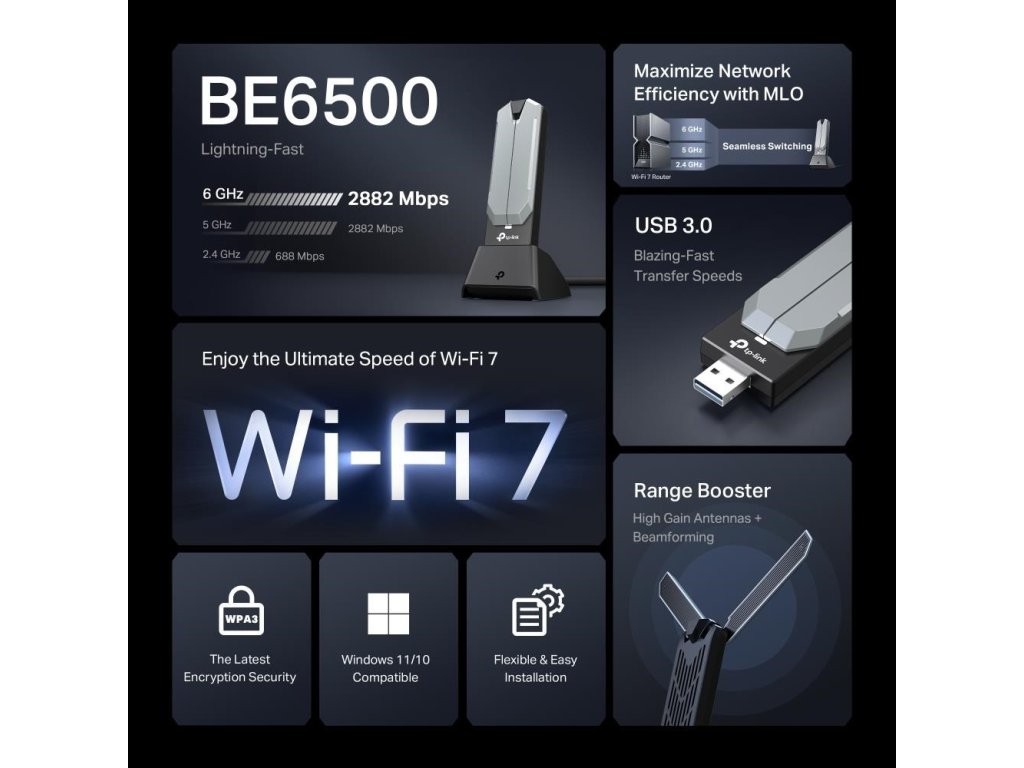 TP-Link Archer TBE400UH WiFi7 USB adapter (BE6500,2,4GHz/5GHz/6GHz,USB3.0)
