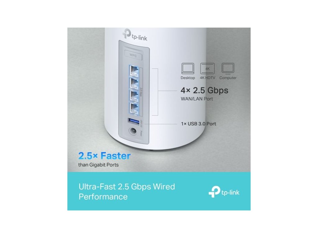 TP-Link Deco BE65(3-pack) BE9300 Třípásmový systém Mesh WiFi 7 pro celou domácnost, 4x 2.5GLAN, USB, 2,4/5/6GHz, HomeShi