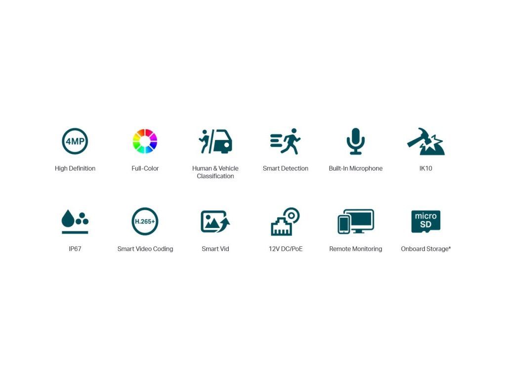 VIGI C240(4mm) je 4 megapixelová venkovní DOME kamera značky TP-Link s fixním objektivem 4 mm, bílým světlem a IR přísvitem do vzdálenosti 30 m a ethernetovým portem s podporou PoE. Kamera má max. rozlišení 2560 × 1440 px (při 30 fps), pozorovací úhel 80°, 2 nezávislé streamy, krytí IP67, digitální WDR snímač, audio mikrofon, slot na microSD kartu (až 256 GB), podporu ONVIF a kodeku H.264(+) a H.265(+). Kamera díky větší citlivosti podporuje tzv. Full-Color barevný obraz během celé noci. Kameru je možné napájet přes 12V DC konektor, případně po ethernetovém kabelu přes 802.3af/at PoE. Klíčové vlastnosti 4MP rozlišení (2560 × 1440 px), 30 fps 24h Full-Color - Získejte 24hodinové barevné detaily, a to i v podmínkách naprosté tmy Klasifikace lidí a vozidel a Smart detekce Vestavěný audio mikrofon Vysoká fyzická odolnost - IK10 proti vandalům a IP67 proti vodě Podpora H.265+ kodeku Více druhů napájení - 802.3af/at PoE a 12V DC konektor Flexibilní správa a úložiště - Převezměte plnou kontrolu nad svým zabezpečením pomocí čtyř metod správy: webového uživatelského rozhraní, uživatelského rozhraní NVR, aplikace VIGI a správce zabezpečení VIGI. Pro každou metodu je k dispozici místní úložiště, stejně jako integrované úložiště se slotem pro kartu SD (až 256 GB). Technické parametry Kamera WDR:Digitální Typ objektivu:Fixní Objektiv [mm]:4 (fixní) Přísvit:IR, Bílé světlo Dosah přísvitu [m]:30 Pozorovací úhel [°]:80 Režim den/noc:Barevný Citlivost senzoru [Lux]:0,005 Obrazový senzor ["]:1/2.7 Obraz Rozlišení:4MP Technologie a vymoženosti:Full-Color Max. rozlišení [pixely]:2560 x 1440 (WQHD) Konektory a rozhraní Slot na paměťové karty:microSD - až 256GB Audio:Mikrofon Rychlost LAN:(1) 10/100Mbps Napájení Napájení přes PoE:802.3af, 802.3at Typ napájení:DC konektor, PoE Max. spotřeba energie [W]:5,4 Napájení přes konektor/svorkovnici:12V DC Fyzické charakteristiky Stupeň krytí:IP67 Použití:Venkovní Antivandal (ochrana proti nárazu):IK10 Tlačítka:Reset Provozní teplota [°C]:-30 až 60 Hmotnost [g]:195 Šířka [mm]:115 Výška [mm]:86 Hloubka [mm]:115 Barva:Bílá Kompresní standardy Datový tok:64Kbps ~ 4Mbps Počet streamů:2 Video komprese:H.264, H.265 Obecné Kamerová řada:VIGI Obsah balení Zařízení Vodotěsný kabelový nástavec Montážní příslušenstvíDodatočné parametre