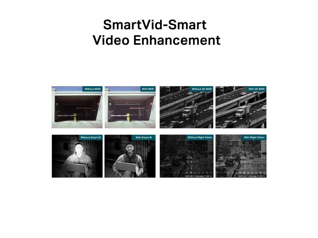 H.265+: Kamery prenášajú komprimovaný krištáľovo čistý obraz bez toho, aby využívali ďalšiu šírku pásma, a šetria tak miesto na disku, znižujú zaťaženie siete a náklady na monitorovanie – to všetko bez zníženia kvality obrazu.