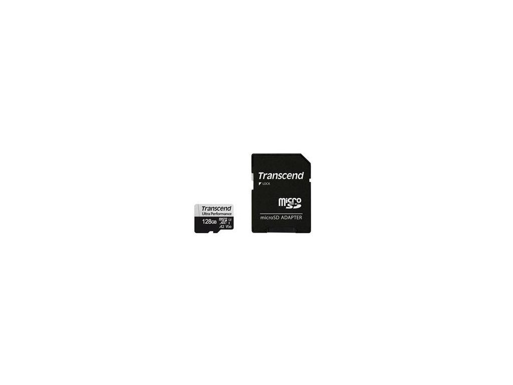Transcend 128GB microSDXC 340S UHS-I U3 V30 A2 3D TLC (Class 10) paměťová karta (s adaptérem), 160MB/s R, 125MB/s W