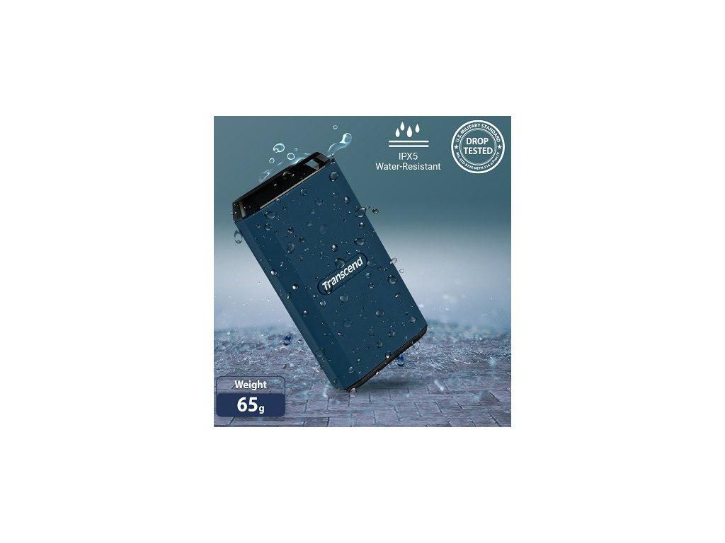 Transcend ESD410C 2TB, USB 20Gbps Type C, Externí odolný SSD disk (3D NAND flash), 2000MB/R, 2000MB/W, modrý Externí odolný SSD disk Kapacita: 2 TB Rychlost čtení/zápis až 2000/2000 MB/s Vstupní rozhraní disku: USB Typ-C Rozměry: 79 mm x 42 x 14,5 mm mm Hmotnost: 65 gramů Barva: modrá Externí rozhraní/konektivita: USB Type C to USB Type A/USB Type C to USB Type C Balení obsahuje kabely: - USB Type-C to USB Type-C - USB Type-C to USB Type-A Transcend's ESD410C portable SSD offers incredible speeds over a USB-C 20Gbps interface. An integrated SLC Cache provides enhanced read/write speeds of up to 2000 MB/s. Whether it's media or gaming files, everything can be transferred in no time at all. ESD410C supports high sustained write speeds, enabling ProRes 4K/60fps recording directly from supported devices such as iPhone 15 Pro/Pro Max. *Speed may vary due to host hardware, software, usage, and storage capacity. Transcend's matchbox-sized ESD410C features an incredibly rugged and water-resistant construction. An integrated lanyard hole allows for a wide range of attachment options. ESD410C's IPX5* rating and MIL-STD-810G US military drop-test compliance means that you can rest assured that your data is fully protected against the elements, even enduring a 3-meter drop!** *ESD410C is rated as IPX5 according to IEC 60529 as determined through internal testing conducted under controlled conditions. Protection against splashes is not permanent. Please ensure the product remains in a dry state. Any damage caused by liquids is not covered by the warranty. **Drop test is performed in non-operating state. This does not guarantee the invulnerability of this product under any circumstances. Please do not drop or strike the product arbitrarily. The ESD410C comes with both a USB Type-C cable and a USB Type-C to Type-A cable to accommodate any devices featuring the USB Type-C or Type-A port. Appearance Dimensions 79 mm x 42 mm x 14.5 mm (3.11" x 1.65" x 0.57") Weight 65 g (2.3 oz) Color Dark Blue Interface USB Type USB Type C to USB Type A/USB Type C to USB Type C Connection Interface USB 20Gbps Storage Flash Type 3D NAND flash Capacity 2 TB Operating Environment Operating Temperature 0°C (32°F) ~ 60°C (140°F) Operating Voltage 5V Note Due to the product's high-speed property, elevated temperatures during data transmission may be observed. This does not affect SSD functionality. Performance Read Speed (Max.) Up to 2,000 MB/s Write Speed (Max.) Up to 2,000 MB/s Note Speed may vary due to host hardware, software, usage, and storage capacity. To reach the maximum performance, the USB Type-C to Type-C cable shall be used, and please make sure your device supports USB 3.2 Gen 2x2 (USB 20Gbps). Warranty Certificate CE/UKCA/FCC/BSMI/KC/EAC/RCM Warranty Five-year Limited Warranty Warranty Policy Please click here for more information about the Transcend Warranty Policy. System Requirement Operating System Microsoft Windows 7 or later macOS 10.10 or laterDodatočné parametre