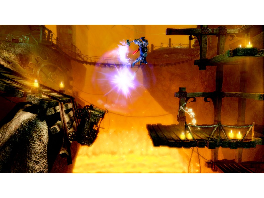 Trine 3: The Artifacts of Power is a fairytale journey which takes you on a quest with three heroes: Amadeus the Wizard, Pontius the Knight, and Zoya the Thief. This tale of a grand adventure as well as the additional challenge levels provide true tests to the three heroes' skills in combat and of solving puzzles in the most creative ways.