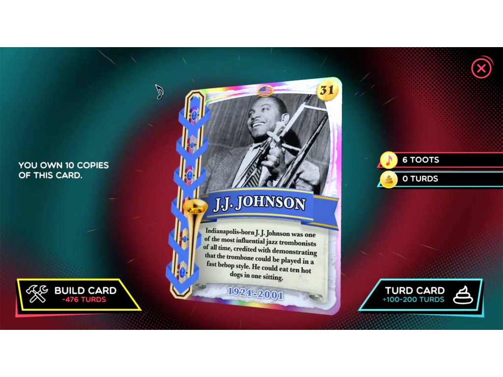 Tromboner Cards - Use the "Toots" you earn from playing songs to purchase sacks of Tromboner Cards. These cards can be used to unlock new tromboners, new trombone colors, and other mysteries!