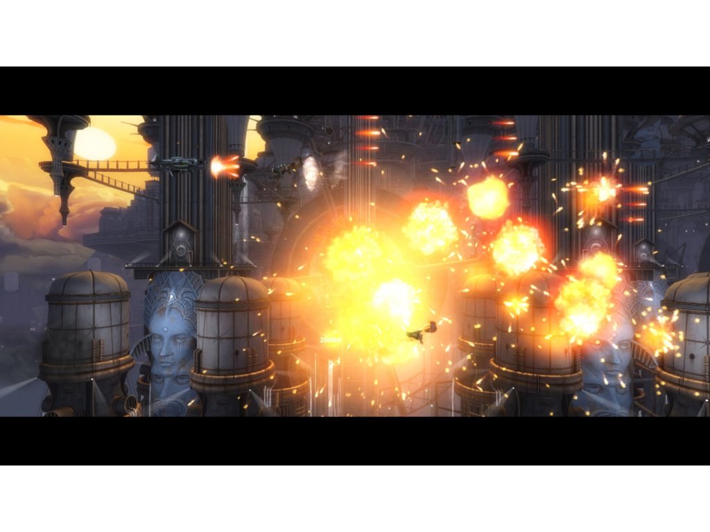Sine Mora is a horizontal shoot'em up that provides a unique take on challenge, where time is the ultimate factor. Mixing classic shooter sensibilities with contemporary presentation, Sine Mora is a gorgeous shoot'em up that offers a Story Mode that weaves an over-the-top tale and an Arcade Mode that provides deep, satisfying gameplay to challenge fans of the genre. With many ways to manipulate time, Sine Mora features over 50 weapon combinations to complete each beautiful stage that form fits to the player's skills with scaling difficulty. Soundtrack composed by Akira Yamaoka and featuring boss designs by Mahiro Maeda.