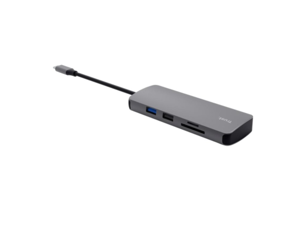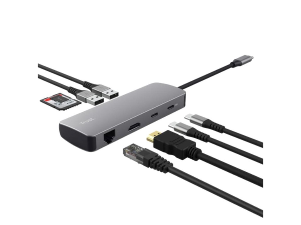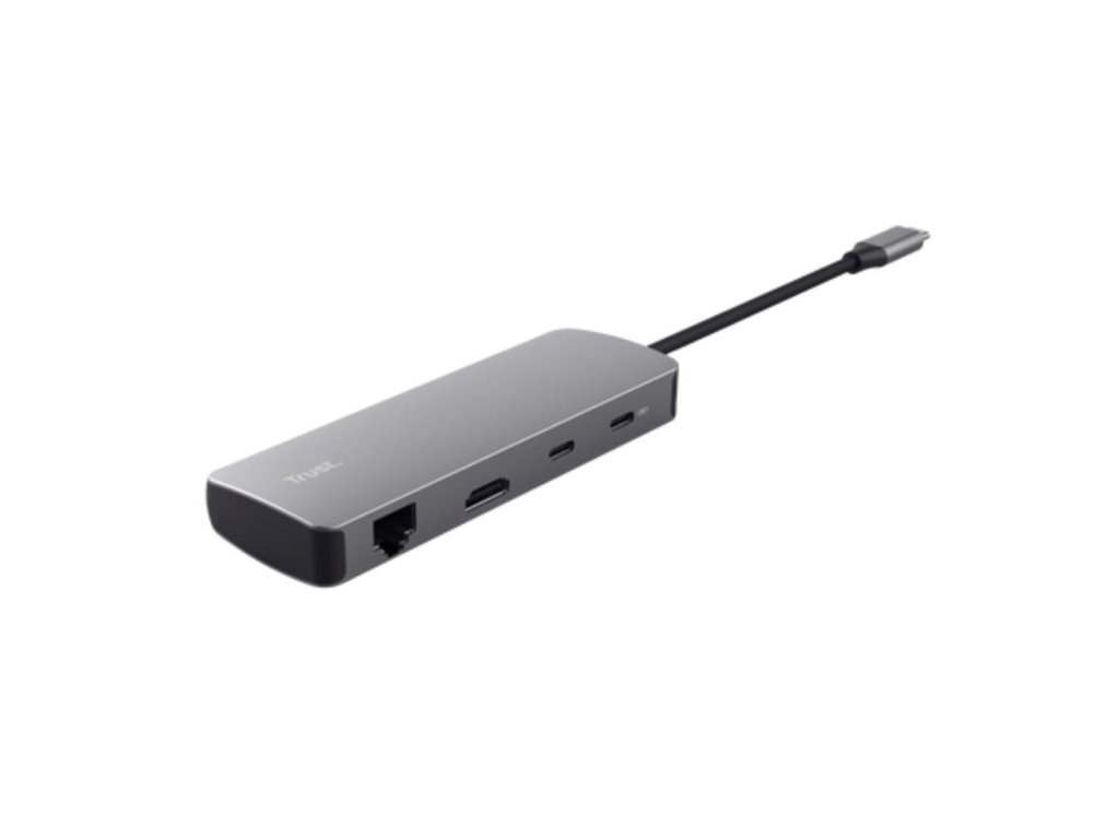 TRUST Dokovací stanice DALYX USB-C, 8v1, HDMI, RJ45, 2xUSB-C, 2xUSB-A, microSD/SD karta, šedá