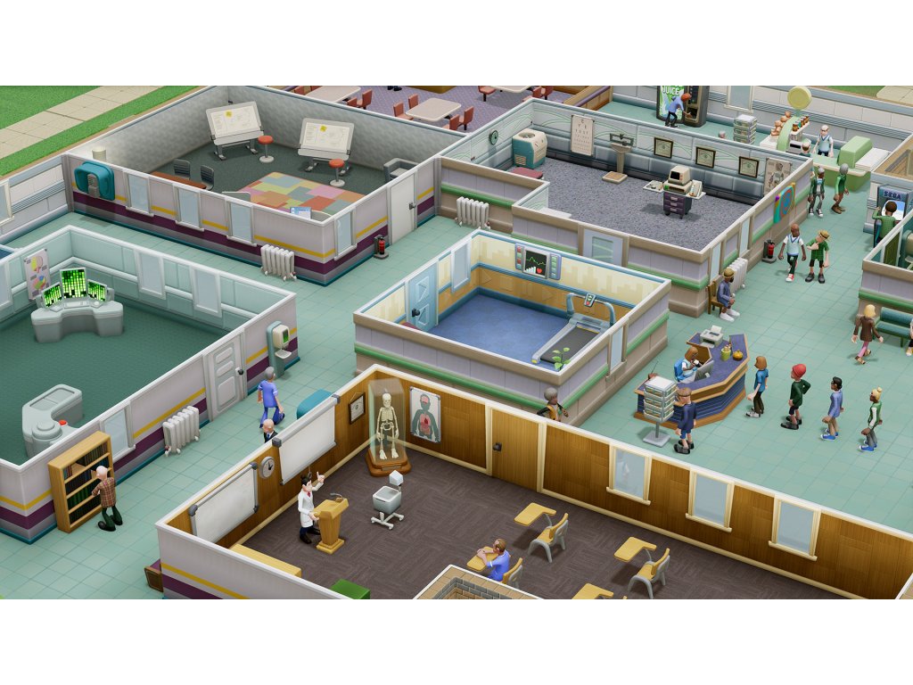 Two Point Hospital is a hospital management video game developed by Two Point Studios and published by Sega in 2018. The game lets you play the role of a hospital manager responsible for building and managing a hospital network. This includes creating specialized rooms, purchasing equipment, hiring staff, doing research, and – of course – curing the diseases. And these are quite uncommon, as the title takes a very comical approach to the genre, meaning you will meet people with turtle heads or pixelated skin, for example.Story