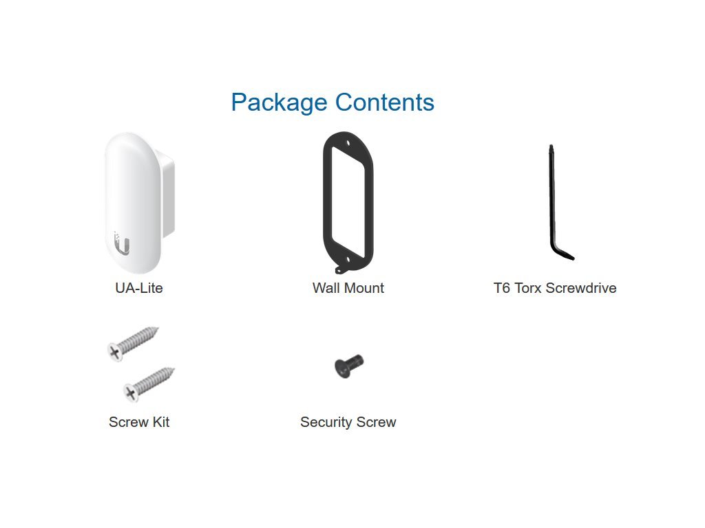 Obsah balení Zařízení (UA-Lite) Držák na zeď Torx šroubovák, šroubky