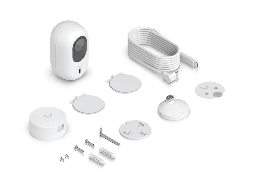 Popis produktu UniFi Protect G4 Instant kamera disponuje 5MP snímačem (2688x1512px) při 30fps, fixním objektivem 2,8mm, IR přísvitem pro noční vidění, mikrofonem a reproduktorem. Kamera má robustní a kompaktní tělo z polykarbonátu, odolnost IK04 proti vandalům a krytí IPX5 proti tryskající vodě. Do sítě se kamera připojuje pomocí Dual-Band WiFi s podporou standardů 802.11a/b/g/n/ac a napájení je řešeno přes USB-C kabel (5V/2A) s maximální spotřebou 6W. Důležité vlastnosti * 5MP, 30fps video * noční režim s IR LED diodami * IPx5 kryt odolný proti povětrnostním vlivům * vestavěný mikrofon a reproduktor * napájení pomocí USB-C * odolnost vůči vandalům - IK04 Obsah balení * zařízení * šroubky + hmoždinky * plastový plát pro přichycení ke zdi * USB-C kabel Technické parametry Rozměry: 81,6x50x47,2mm Hmotnost: 125g (bez montáže)|163g (s montáží) Senzor: 5MP CMOS sensor Čočka: Fixed focal length EFL 2,8mm, f/1,6 Zorný úhel: H: 102,4°, V: 54,9°, D: 120,6° Komprese: H.264/MJPEG Rozlišení: 2688x1512 (16:9) Procesor: Dual core Arm Cortex-A7 based chip Paměť: 2GB DDR3 Ovládání: UniFi Protect Síťové rozhraní: 802.11 a/b/g/n/ac WiFi|Bluetooth Maximální spotřeba: 6WDodatočné parametre