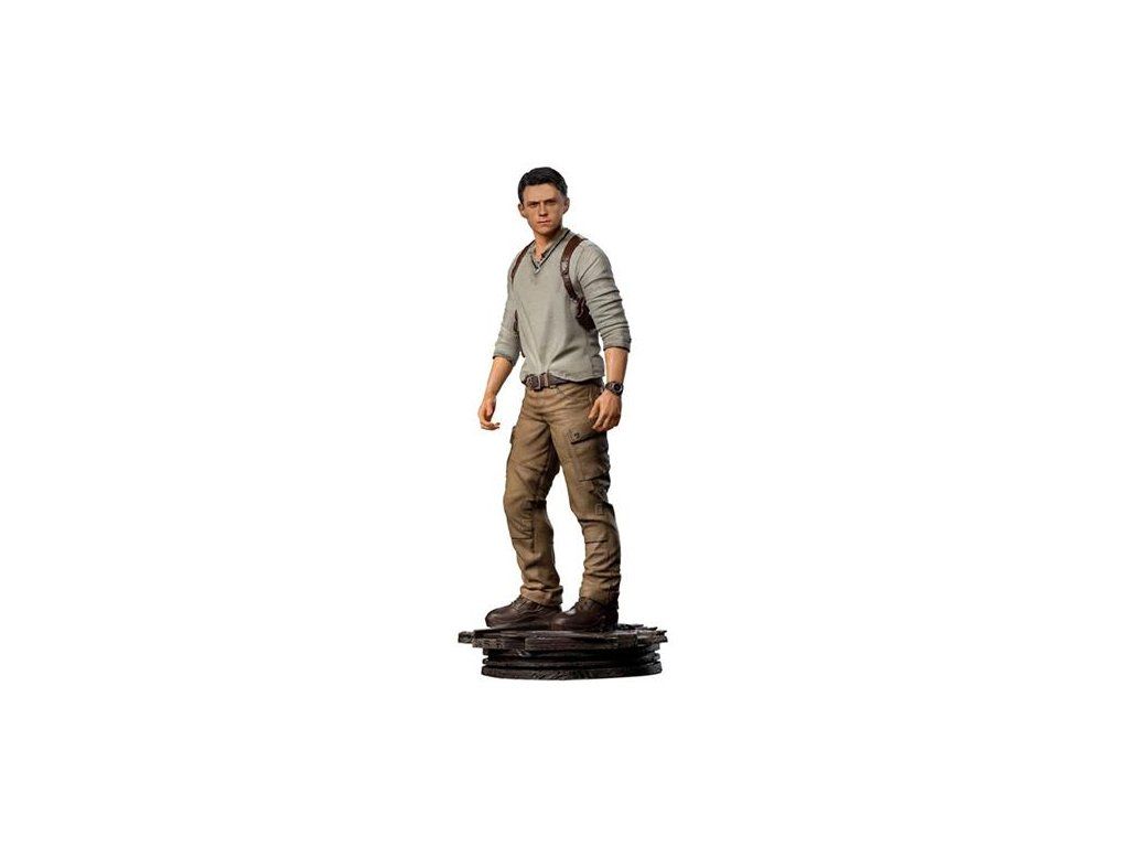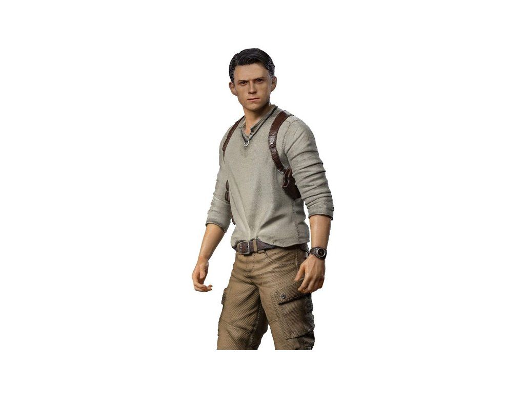 V hnedých topánkach a nohaviciach, neodmysliteľnej khaki košeli, s puzdrom v podpazuší a náhrdelníkom s prsteňom, ktorý patril jeho predkovi Sirovi Francisovi Drakeovi a ktorý mu v detstve zanechal jeho starší brat, Iron Studios predstavuje sochu "Nathan Drake - Uncharted Movie - Art Scale 1/10", ktorej hlavného hrdinu vo filmovej adaptácii vychvaľovanej série videohier stvárnil Tom Holland.