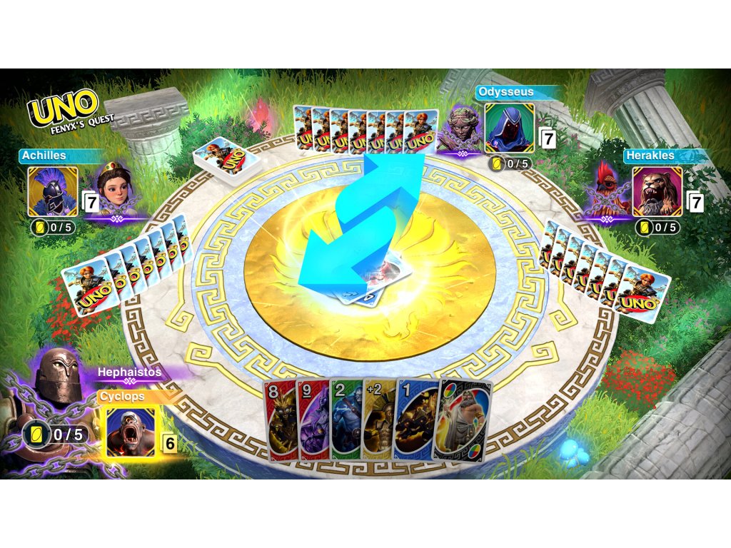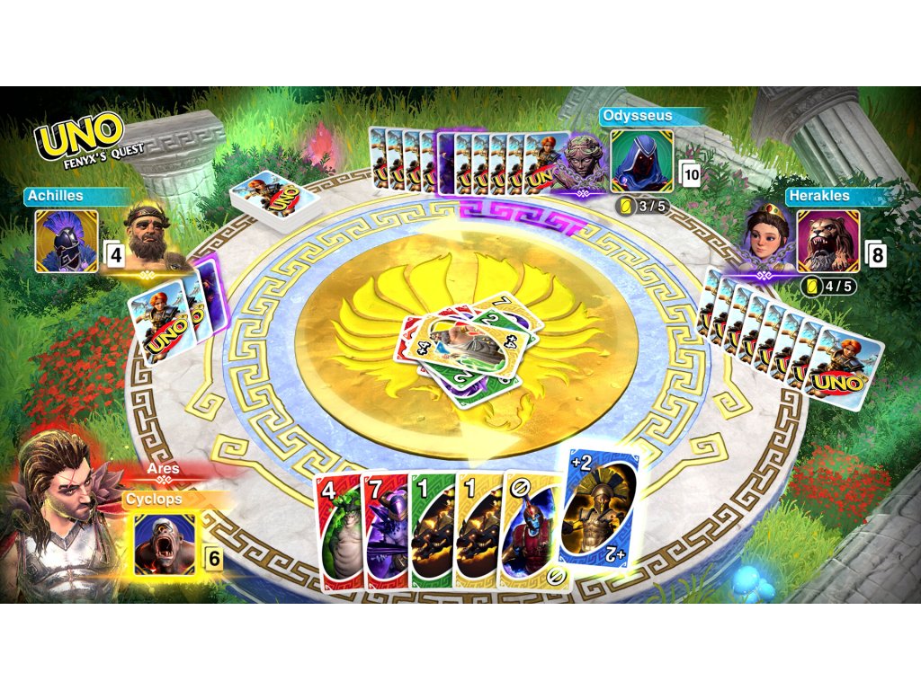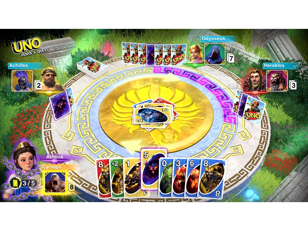 The most famous card game hosts a legendary showdown! An all-new game mode inspired by the mythical world of Immortals Fenyx Rising, UNO Fenyx’s Quest plunges you into the marvelous Golden Isle and its mysteries and wonders. Avoid the traps of Typhon, free the gods from their curse, and wield their mighty powers to be the first one to get rid of your hand. Olympus awaits you.