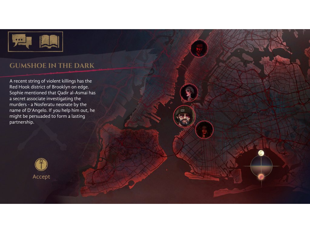 Vampire: The Masquerade - Coteries of New York is a single-player adventure game in the style of a strongly narrative-driven visual novel that is based on the role-playing game Vampire: The Masquerade and set in the fictional universe called World of Darkness.
