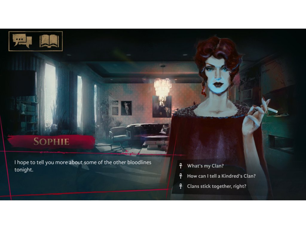 As a vampire the player can belong to one of the few vampire clans, each of them offering different dialogue options as well as certain ethics and powers.