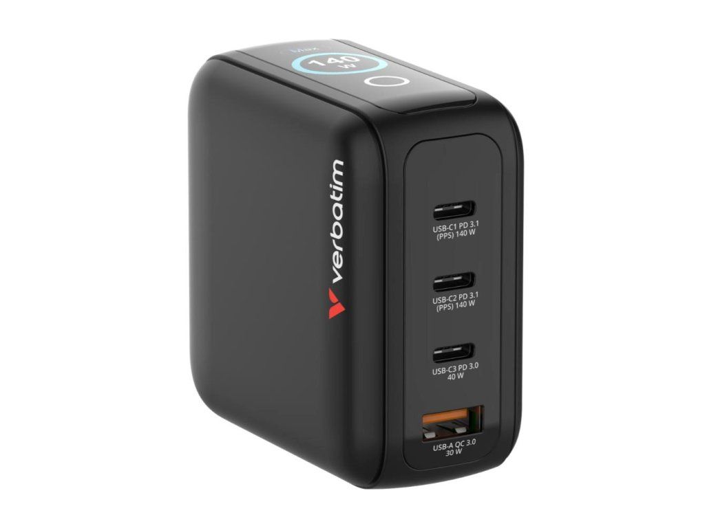 VERBATIM Mini GaN Nabíječka s displejem 140W, 3xUSB-C, 1xUSB-A, černá