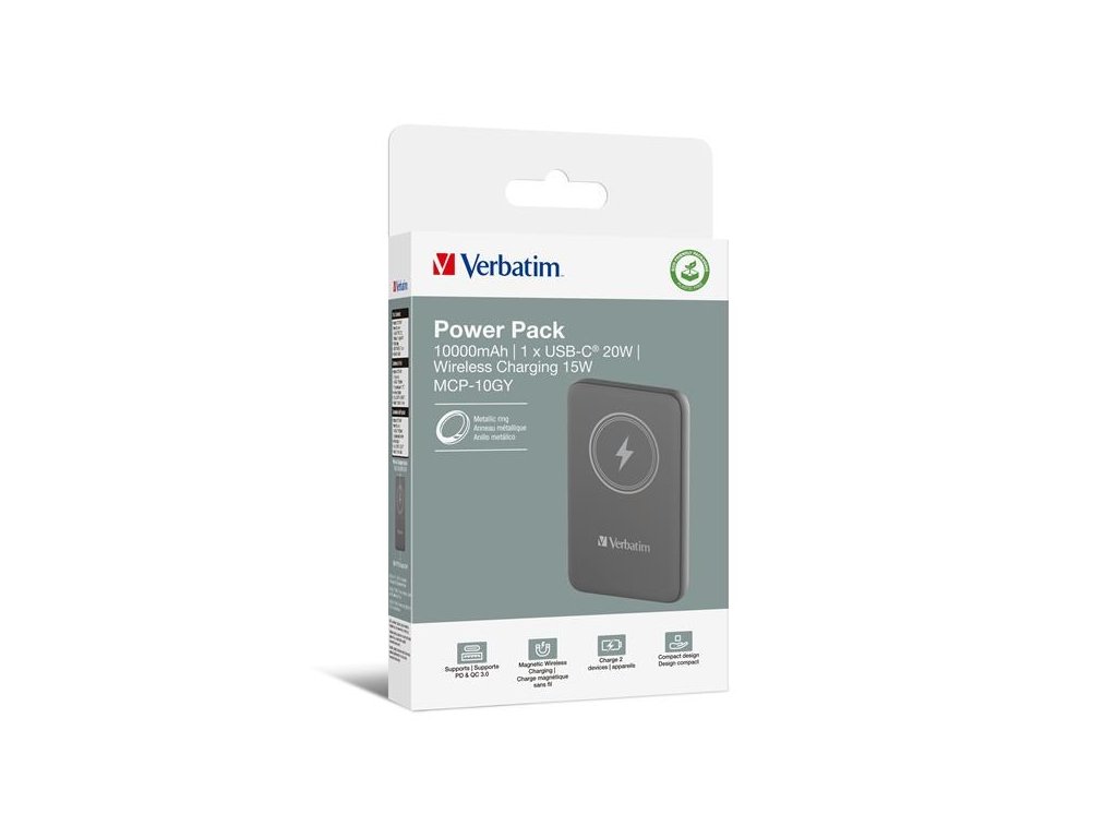 VERBATIM Powerbanka Charge 'n' Go, Magnetická, 10000 mAh, USB-C, Šedá