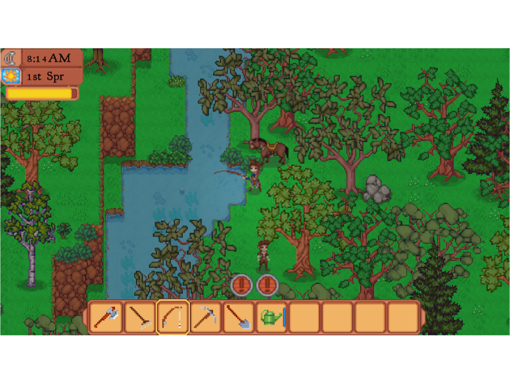 - Nock An Arrow: Stalk the surrounding wilderness for a variety of animals. Hunt creatures with your trusty bow and arrow.