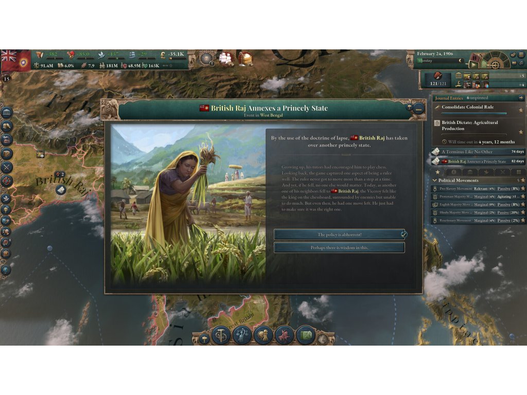 - Use the new Harvest and Famines mechanics to secure India's food supply, taking advantage of the unique events and narrative content