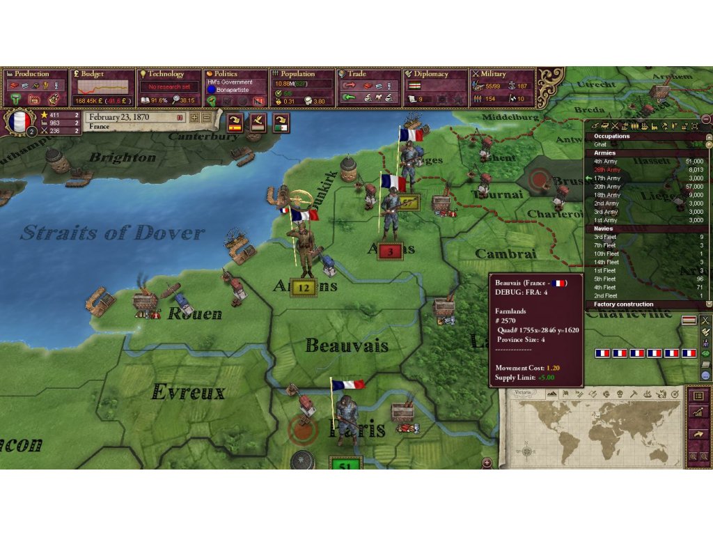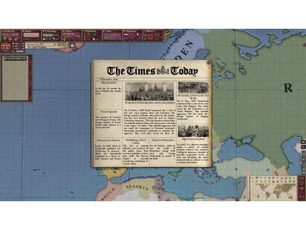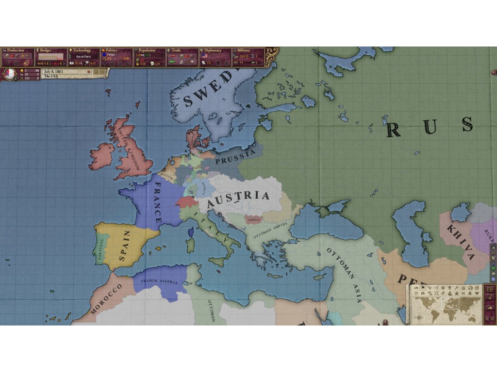 Thanks to wise management and the right decisions we can change the fate of the world - to strengthen the position of one of the real powers and expand its influence or even create a powerful empire from a country that theoretically has no great predisposition for this. There are a lot of possibilities, and it is the duration of the game that allows us to make really significant changes and reforms and meet their long-term effects, both positive and negative.Of course, like any leader, we must take care of many factors that will ultimately add up to our success or failure. The economy is fundamental - without it, we cannot feed our people, we cannot produce new goods, we cannot trade, and consequently get rich. Do not forget about diplomacy - sometimes with one wise treaty and taking care of relations with your neighbor you can gain more than with open conflict and violence.