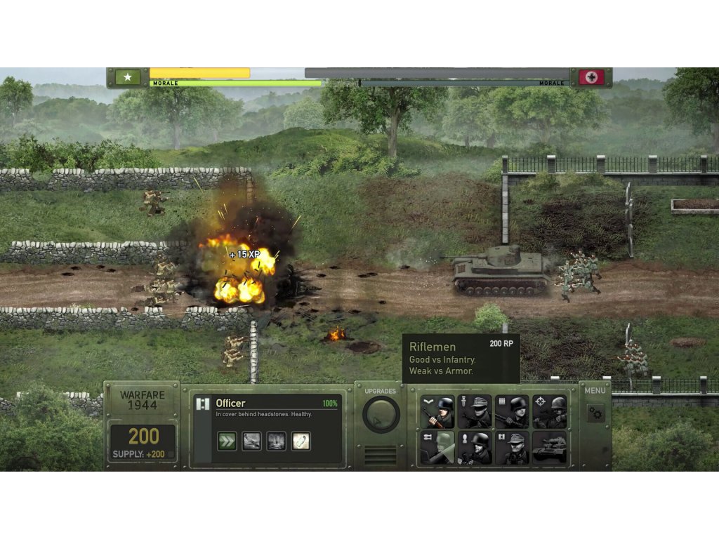 - Spend command points to upgrade your troops and fire support.