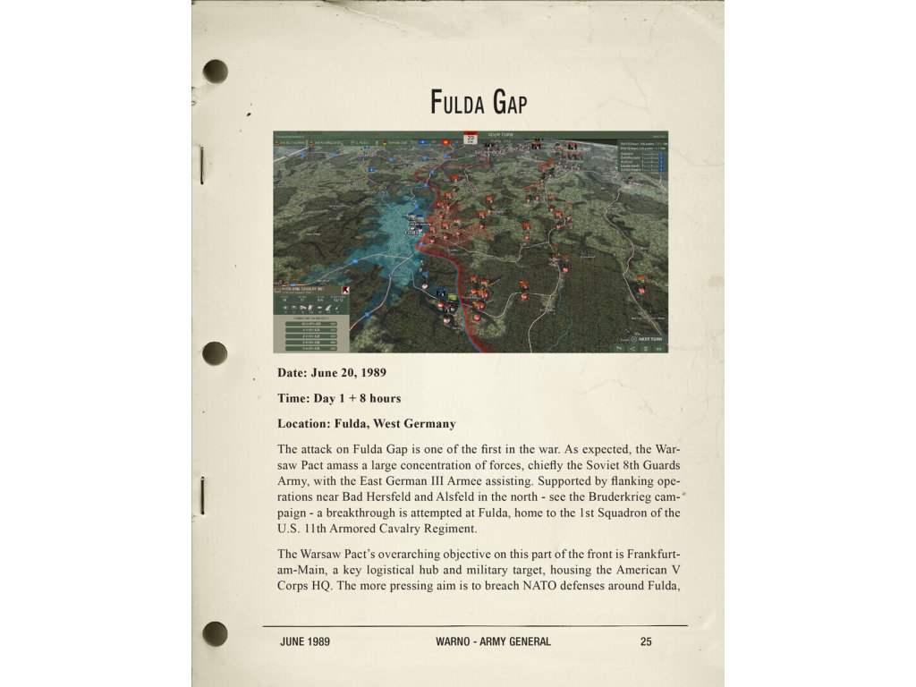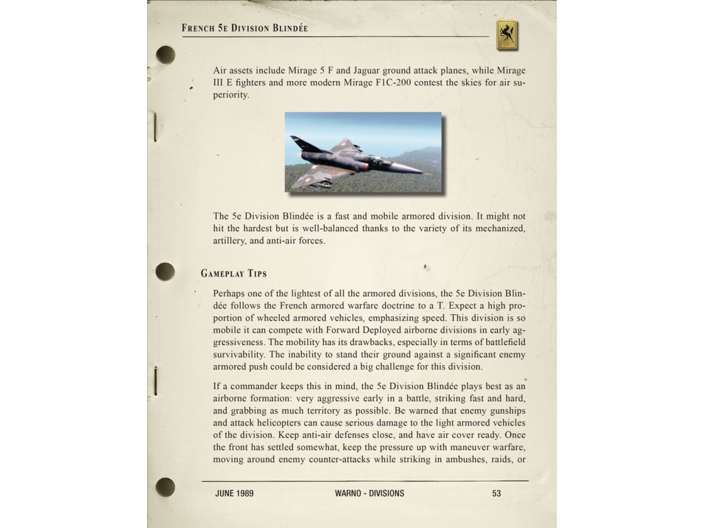 - 2 e-books with almost 200 pages in total! - WARNO's Timeline and Designer's Notes respectively on Army General, Operations plus an in-depth Divisions overview.