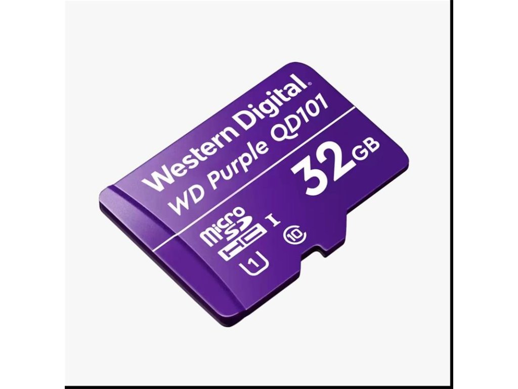 WD Purple microSD Cards Keeps Your Data in Sight. Western Digital’s WD Purple SC QD101 microSD card is designed specifically for the mainstream security camera market. Using advanced 96-layer 3D NAND technology, the card delivers a cost-effective combination of ultra endurance, high performance, and wide capacity range up to 1TB1, and its support for card health monitor functionality allows for pre-emptive storage management. With the fast-growing market of security cameras, and growing adoption of 4K video, this card offers the right combination of longevity and capacity to handle the 24/7 continuous recording workload. Trust Western Digital to deliver WD Purple –the ideal microSD storage for security video cameras and edge devices. It's WD Purple Designed for Surveillance. Being a member of a market-leading brand gives you assurance that this card is designed with the right robustness, performance and features for always-on security video cameras and edge devices. Put More Confidence In Your Cameras Ultra Endurance. WD Purple SC microSD cards are designed for continuous 24/7 recordingshould cameras lose connection with the NVR, providing additional confidence in your security video solution. Smart Storage Maintenance Card Health Monitoring. In compatible cameras, card health monitoring capability allows you to get notified when it's time to service your WD Purple microSD card, so you can perform preemptive storage management. Robust Storage, Indoors or Outdoors Supports -25°C to 85°C temperature range; humidity resistant. Have peace of mind that this card is designed for continuous operation in extreme weather conditions and in a variety of climates. Continuous Capture, Hours or Days Capacities up to 1TB1. WD Purple microSD cards are built with advanced 96-layer 3D NAND technology, ensuring high performance, reliability, and endurance. Western Digital offers a wide range of capacities for different cameras, resolution, and recording implementations; use for both motion-triggered and continuous recording Ideal for Ideal for mainstream video surveillance cameras supporting on-camera storage (microSD slot) for stand-alone recording or failover local storage in the event of network outage. Full Specifications Features Optimized for 24/7 video surveillance cameras Designed with ultra endurance for continuous operation Advanced 96-layer 3D NAND Technology Capacity 32GB Form Factor microSDXC™ Compatibility SDA 6.0 compliant microSD slots Interface SDA 6.0 Warranty 3-Year Limited Warranty Model Number WDD032G1P0C Operating Temperature -25°C to 85°C Non-Operating Temperature -40°C to 85°C Certifications CE, FCC, C-Tick/RCM, UKCA, EAC, ICESDodatočné parametre