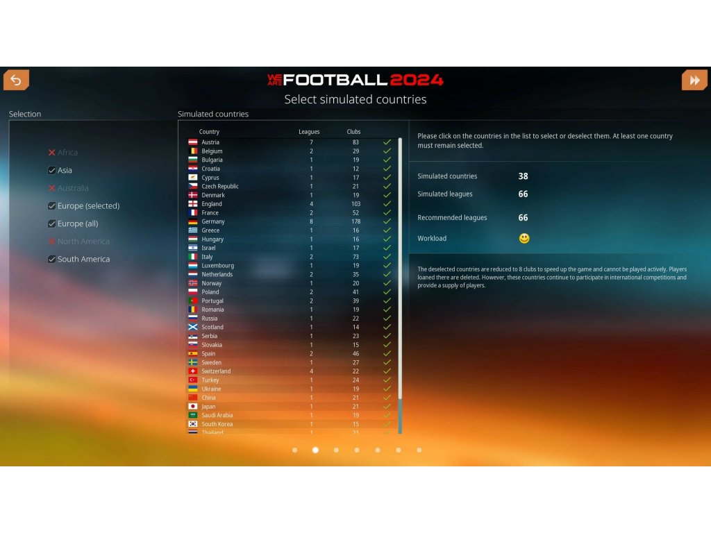 - Option to choose a national team to manage directly at the start of the game or long-term takeover offers for national teams during gameplay