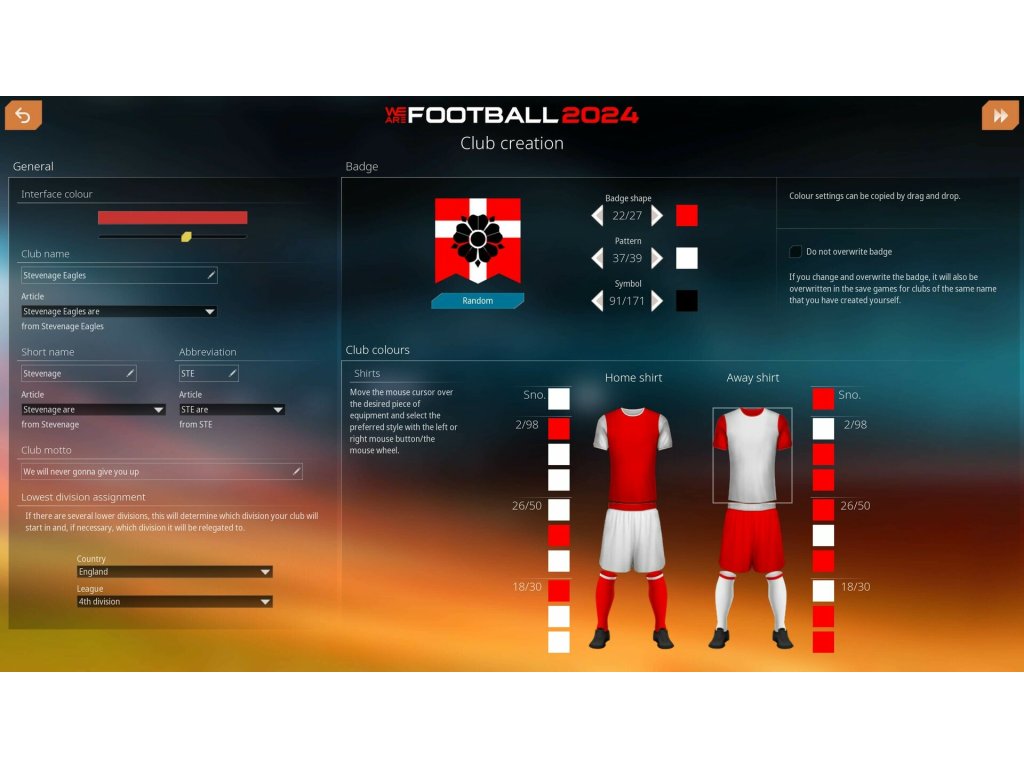 WE ARE FOOTBALL 2024 offers an extensive feature set to adapt the game to your needs, including a powerful external editor to set up league systems, clubs, players, managers, employees, referees, sponsors, fan chants, derbies, and more. Configure the game to your skill level and preferences with over 100 options and difficulty settings to make this YOUR road to glory.