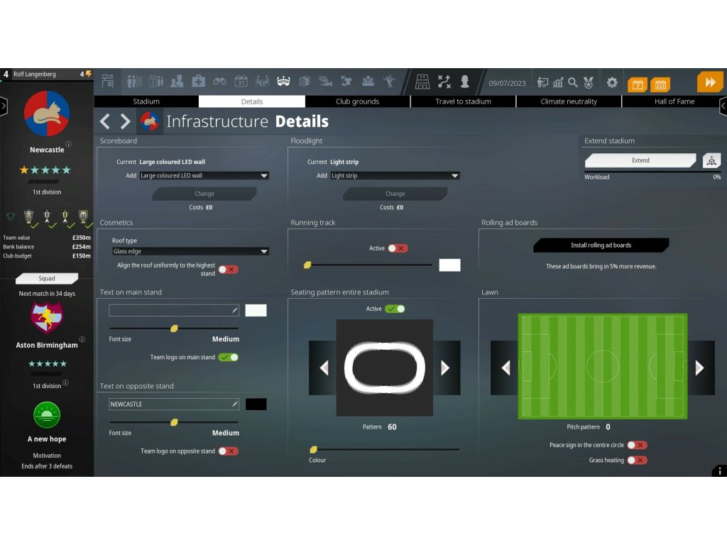 - Stadium editor that lets you expand, upgrade, and customize your home ground