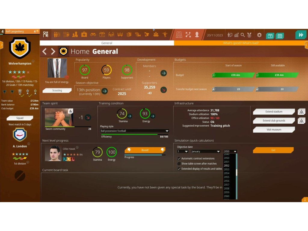 - Optional simulation of the manager's private life, including family and children who can start a professional football career or become a department head at your club