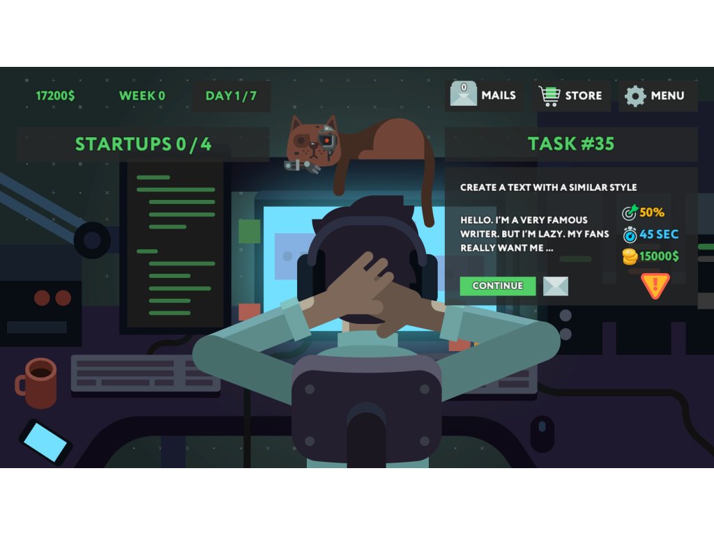 Everyone is speaking about machine learning. Forbes writes that these developers and Data Scientists have incredible salaries, Elon Musk says that they can accidentally create an AI that can enslave humanity. So, what are these people really doing when they come to work? This game is a simulator of a machine learning specialist who uses visual programming to make his and his cat's living. Learn what those guys are actually doing and realize if it is possible to create a big and scary evil AI by mistake (or not)?