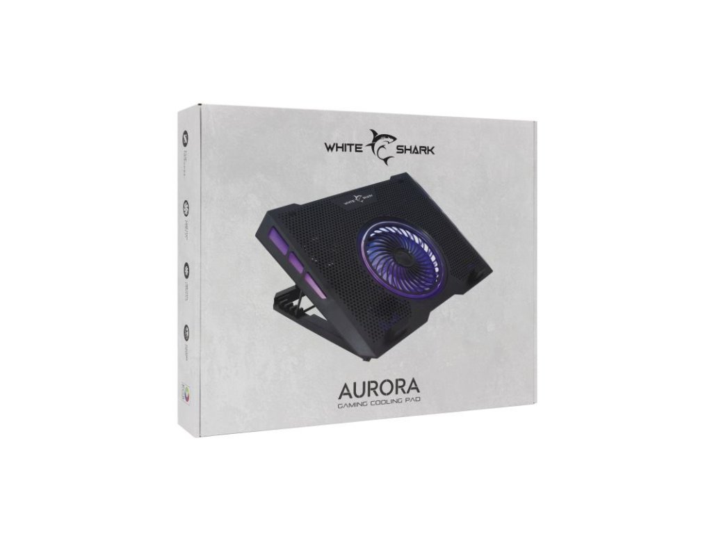 Predstavujeme chladiacu podložku pre laptop White Shark "AURORA" - nového najlepšieho priateľa vášho notebooku! Elegantný hliníkový dizajn prispôsobený pre obrazovky s uhlopriečkou až 17,3''. Tiché ventilátory sa pohybujú v rozsahu od 1400 do 2500 otáčok za minútu a produkujú iba 5-15 dBA hluku. Zostaňte v spojení so vstavaným rozbočovačom USB (2x USB) a vychutnajte si bezproblémový multitasking. So 6 nastaviteľnými uhlami nájdite svoje ergonomické nebo. Pre uhlopriečku obrazovky až 17,3'', max. otáčky ventilátora 2500 RPM, 5 ventilátorov. Prietok vzduchu (CFM): 20-30. Pracovné napätie (V): 5. Rozmery (mm): 400x280x50. Hmotnosť (g): 880. Dĺžka kábla (m): 0,7Dodatočné parametre