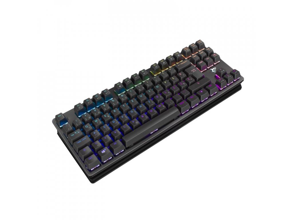 Hráčska mechanická klávesnica, 87 tlačidiel, EN rozloženie klávesnice, tlak 60g +/-15g, hĺbka klávesov (2mm), Anti-Ghosting 87 klávesov, hráčske mechanické prepínače OUTEMU (RED) so životnosťou viac ako 50 miliónov kliknutí, podsvietenie: RGB LED, materiál plast + kov, USB 2.0 rozhranie, zapletaný kábel s dĺžkou 180cm. Rozmery: 355mm x 135mm x 20mm, hmotnosť 640g.Dodatočné parametre