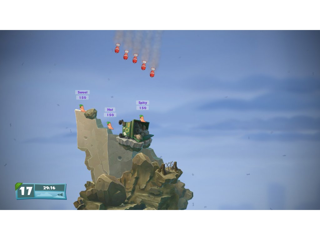- Crafting: No more waiting around while your opponents take their turns! Grab the crafting crates that drop from the sky during games to make fiendishly upgraded versions of items such as the Electric Sheep, the Bazooka Pie and the Holy Mine Grenade to unleash on your enemies!