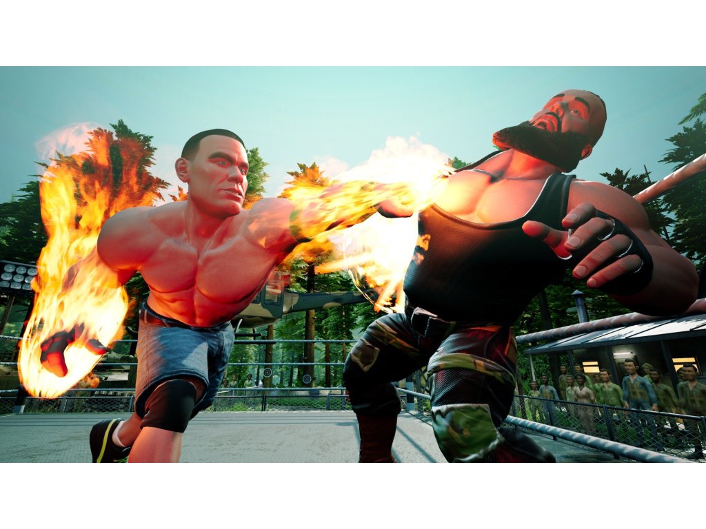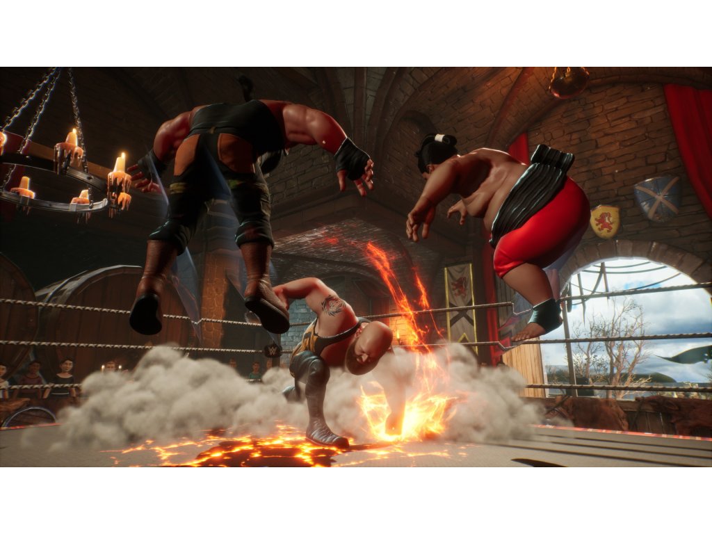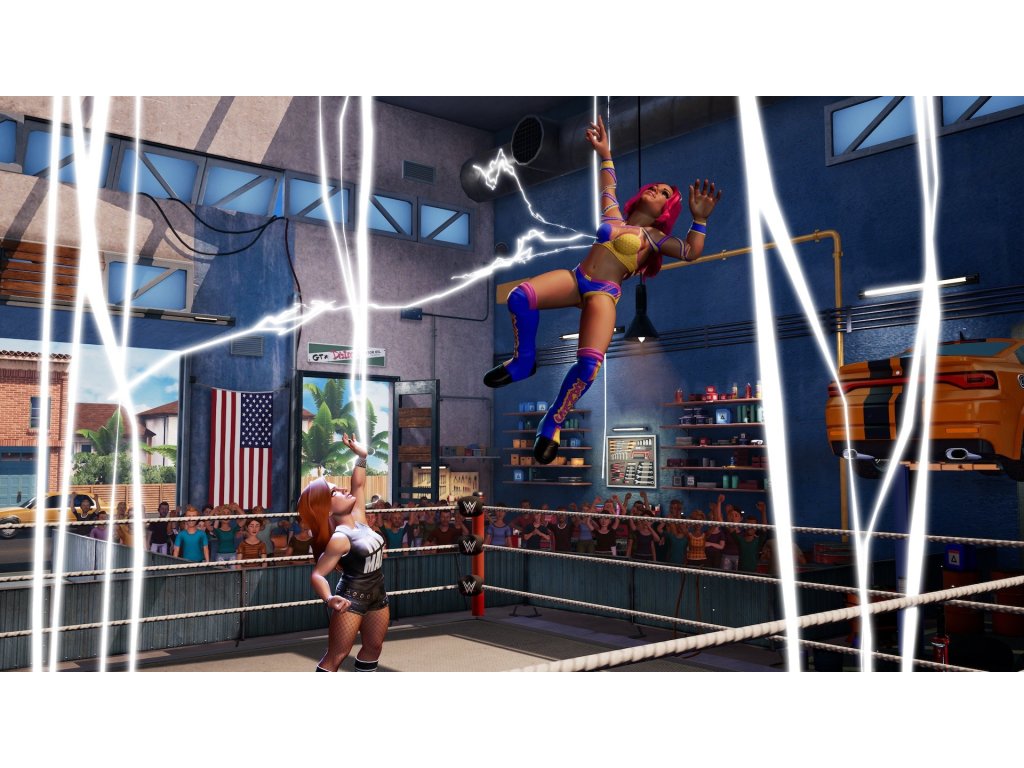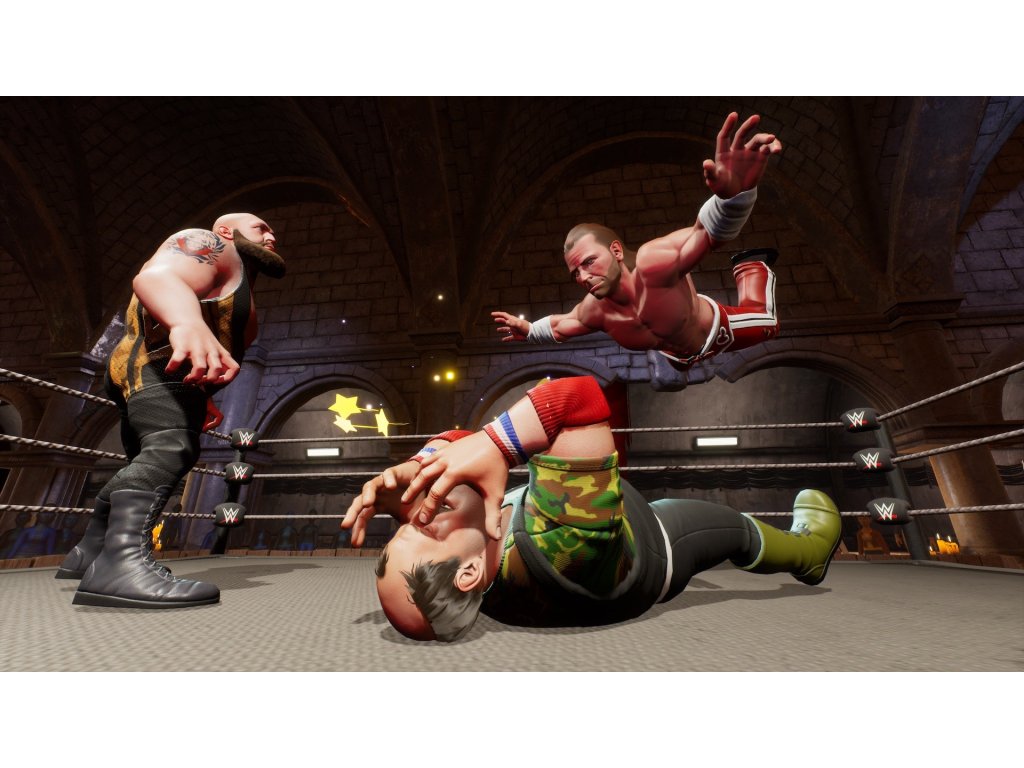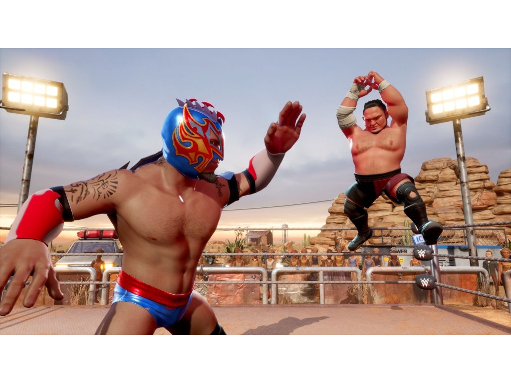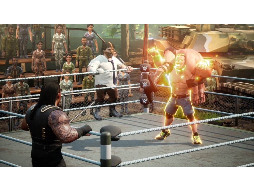 The world of WWE is your battleground with all-new, over the top, in-your-face arcade action as your favorite WWE Superstars and Legends battle it out in outlandish interactive environments around the world. Compete in your favorite match types with an arsenal of exaggerated maneuvers, special abilities, and devastating power-ups, including Steel Cage, Royal Rumble, Fatal Four Way and more, as Mauro Ranallo and Jerry “The King” Lawler call all the mayhem! Are you ready to enter the battleground?