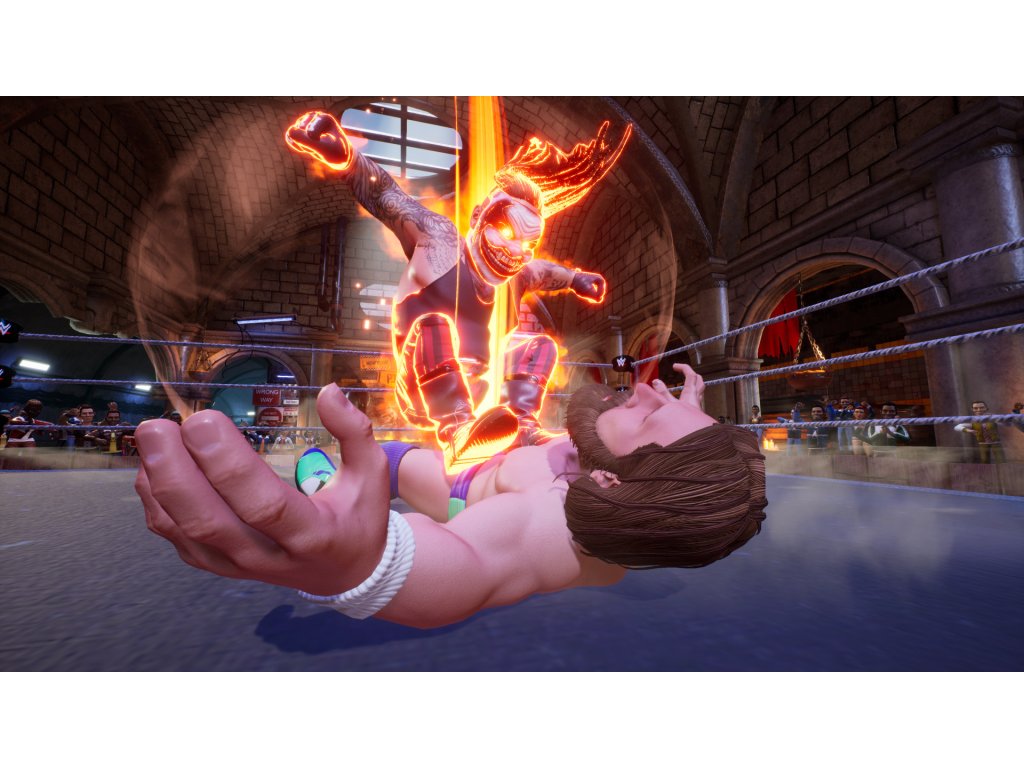 Take your favorite WWE Superstars and Legends into battle with unrestrained, unhinged, and in-your-face pandemonium! Pull off over-the-top moves and use your special abilities to destroy your opponent while battling in interactive environments!