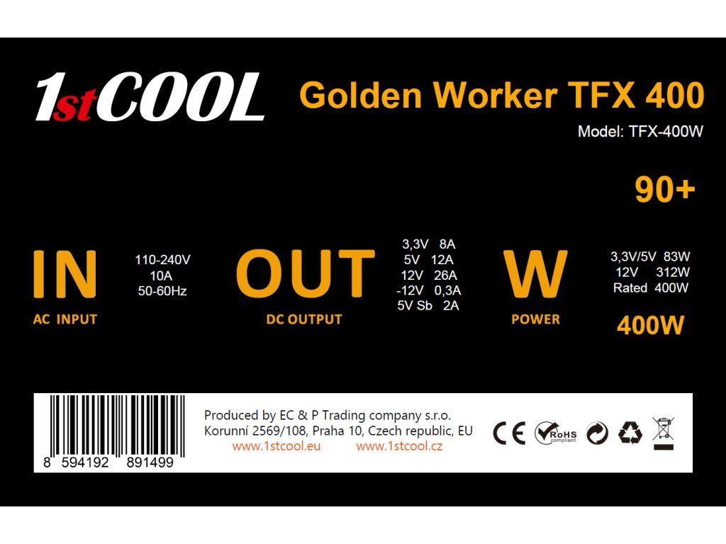 Zdroj 400W TFX 1stCOOL GOLDEN WORKER TFX 400 88+
