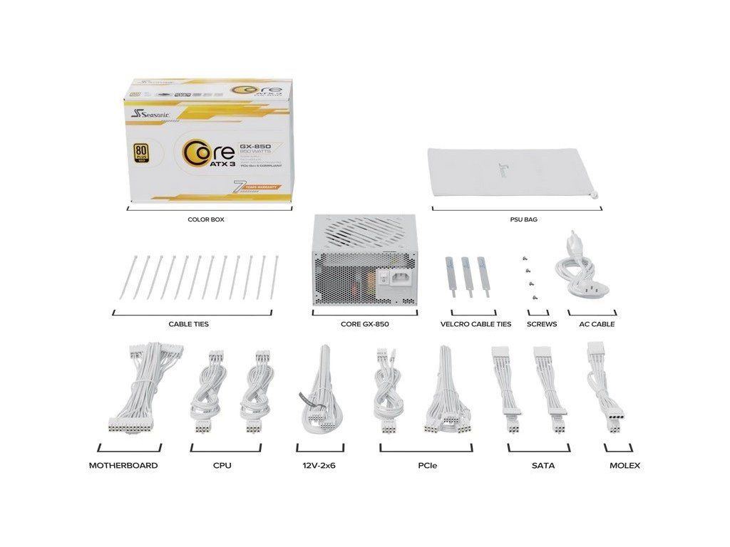 Zdroj 850W, Seasonic Core GX-850 WHITE ATX3.1 80Plus Gold, modular