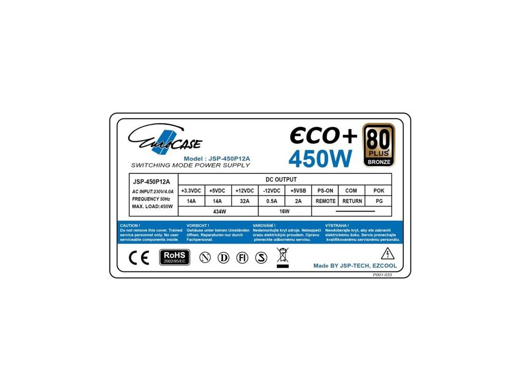 Zdroj Eurocase Eco+ 450W, 80PLUS BRONZE, 12cm ventilátor, bulk